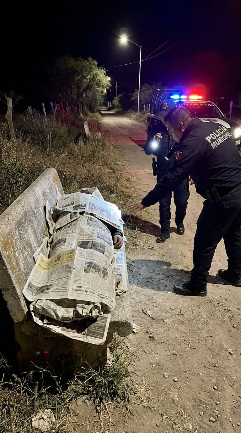 La oscuridad de la carretera rural era absoluta, solo interrumpida por la luz amarillenta de un poste que parpadeaba como si quisiera rendirse ante la noche. Allí, sobre un banco de concreto frío y poroso, yacía don Jacinto. Sus manos, agrietadas por los años y el cemento de construcciones pasadas, sostenían con fuerza unos periódicos viejos que usaba como manta.