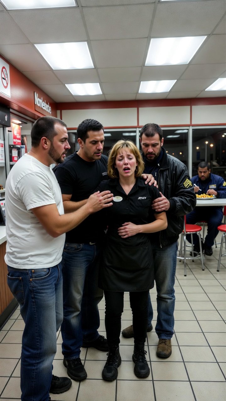 En ese momento, las sirenas azules y rojas iluminaron las ventanas mojadas por la lluvia. Dos patrullas frenaron bruscamente frente al local. Los policías entraron con las manos en sus armas.