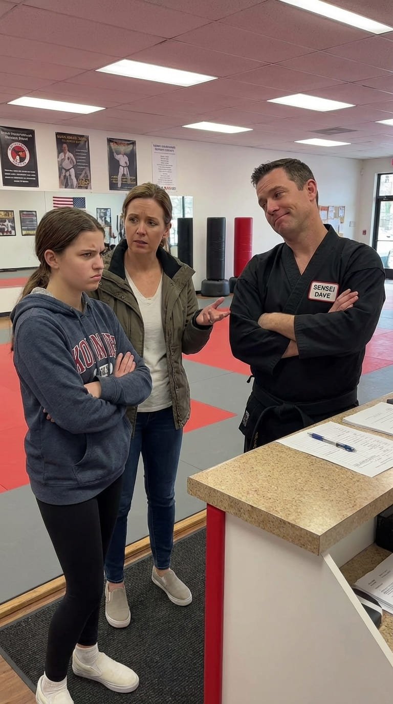 —Te estoy hablando, niña. Mira, vamos a hacer algo para que tu tarde no sea tan aburrida. Hagamos una apuesta. Si logras tocarme en un combate de un minuto, me arrodillaré aquí mismo frente a todos y le pediré perdón a tu madre por cada vez que le he gritado para que limpie mis manchas de sudor.