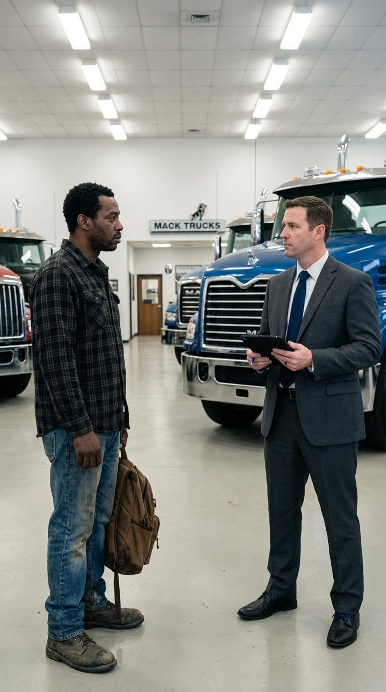 —Amigo, buenas tardes —comenzó Felipe, con su voz cálida y respetuosa, quitándose la gorra manchada de sudor—. Estoy buscando comprar dos camiones nuevos, ¿me podrías indicar los modelos que tienes disponibles, por favor?