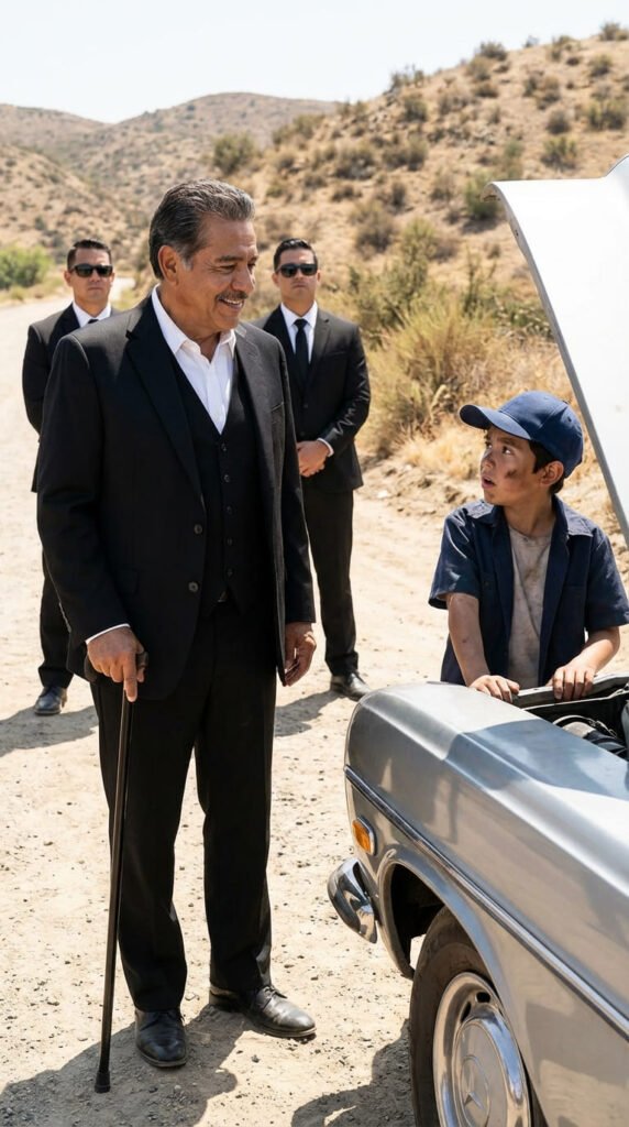 El niño se acercó al imponente vehículo sin mostrar ni un ápice de intimidación. Mientras los guardaespaldas daban un paso al frente para apartarlo, el pequeño se limitó a señalar el motor abierto.