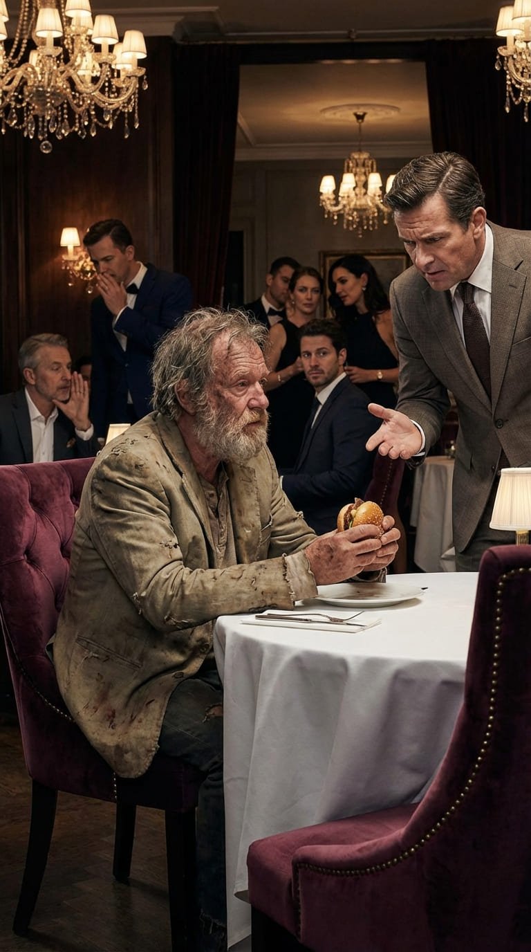 El silencio que siguió fue sepulcral, espeso y cargado de tensión. Todos observaban la humillación pública del hombre de la chaqueta andrajosa.