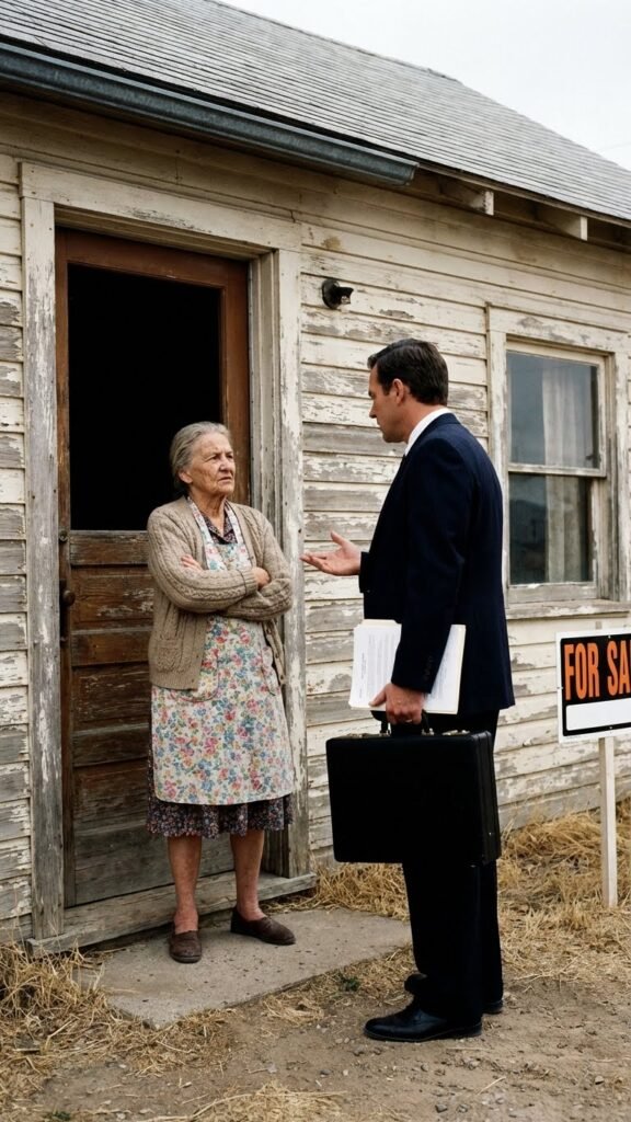 El sonido del maletín golpeando el suelo de tierra fue seco, definitivo. Fue como si un martillo hubiera roto el cristal que separaba dos mundos: el del lujo arrogante de Roberto y la pobreza digna de la anciana.