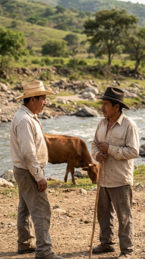 Caminaba con su bastón de madera de guayacán, dirigiendo al ganado hacia la orilla del río, el único lugar donde el pasto aún conservaba un verde esperanza. Sin embargo, al llegar al recodo que dividía las propiedades, se encontró con una figura que lo dejó paralizado. Un hombre de porte firme, con un sombrero blanco reluciente que parecía no tener ni una mota de polvo, le bloqueaba el paso.