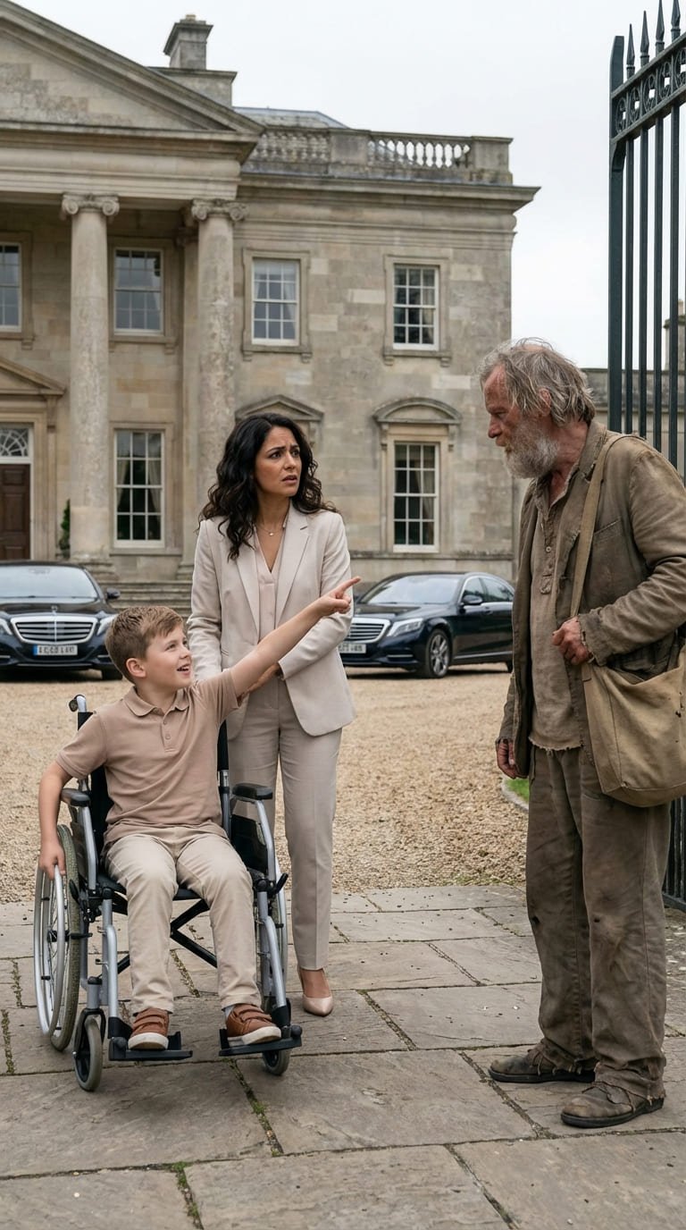 Valeria frunció el ceño, confundida y alarmada. Miró a su hijo y luego al vagabundo, sintiendo que el corazón le latía con fuerza contra el pecho.