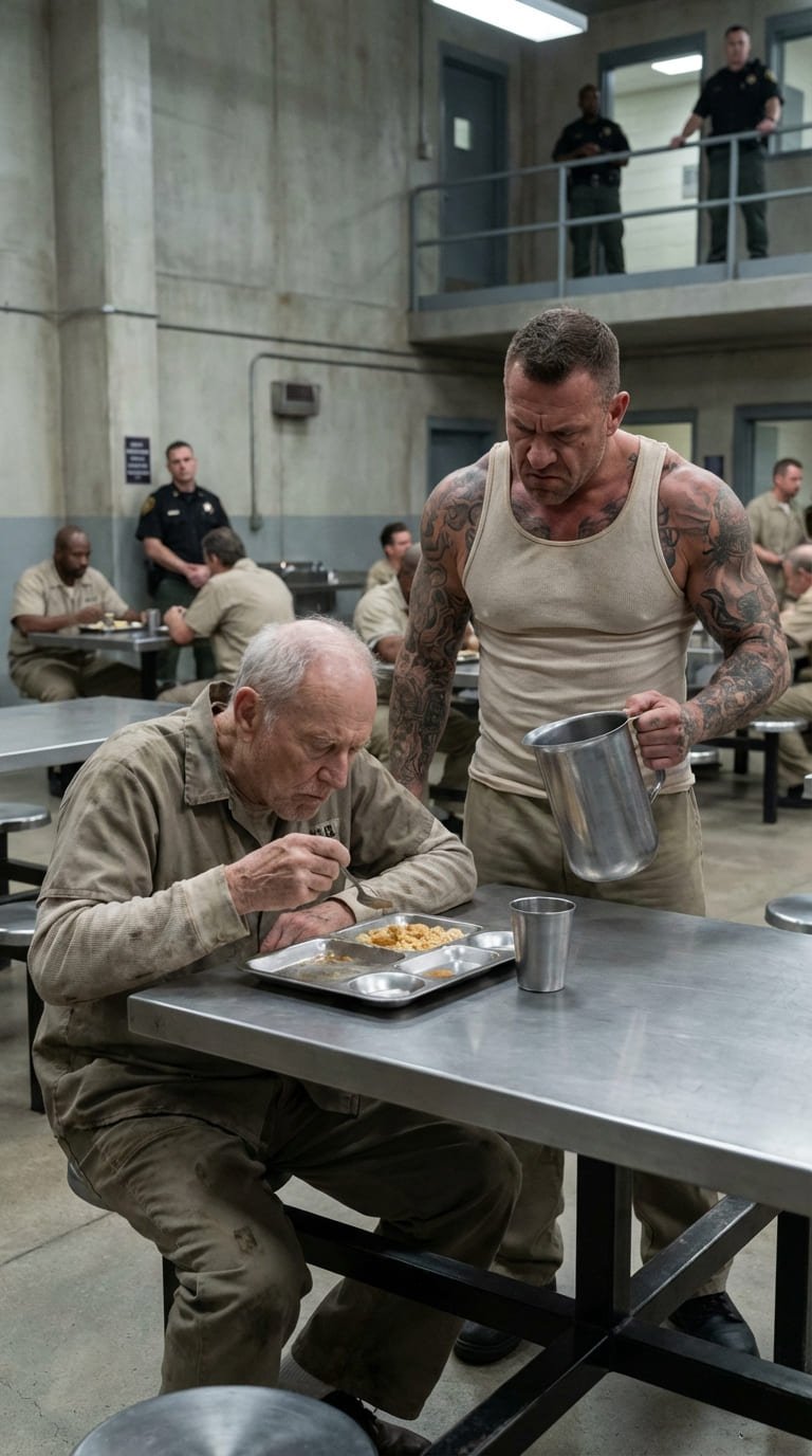 El agua helada y sucia empapó el uniforme del anciano, se coló por su cuello y arruinó la poca comida que tenía en la bandeja. El Toro soltó una carcajada estrepitosa que retumbó en las paredes de concreto. Don Santos cerró los ojos un segundo. El agua goteaba por su nariz y sus mejillas, pero no se movió.